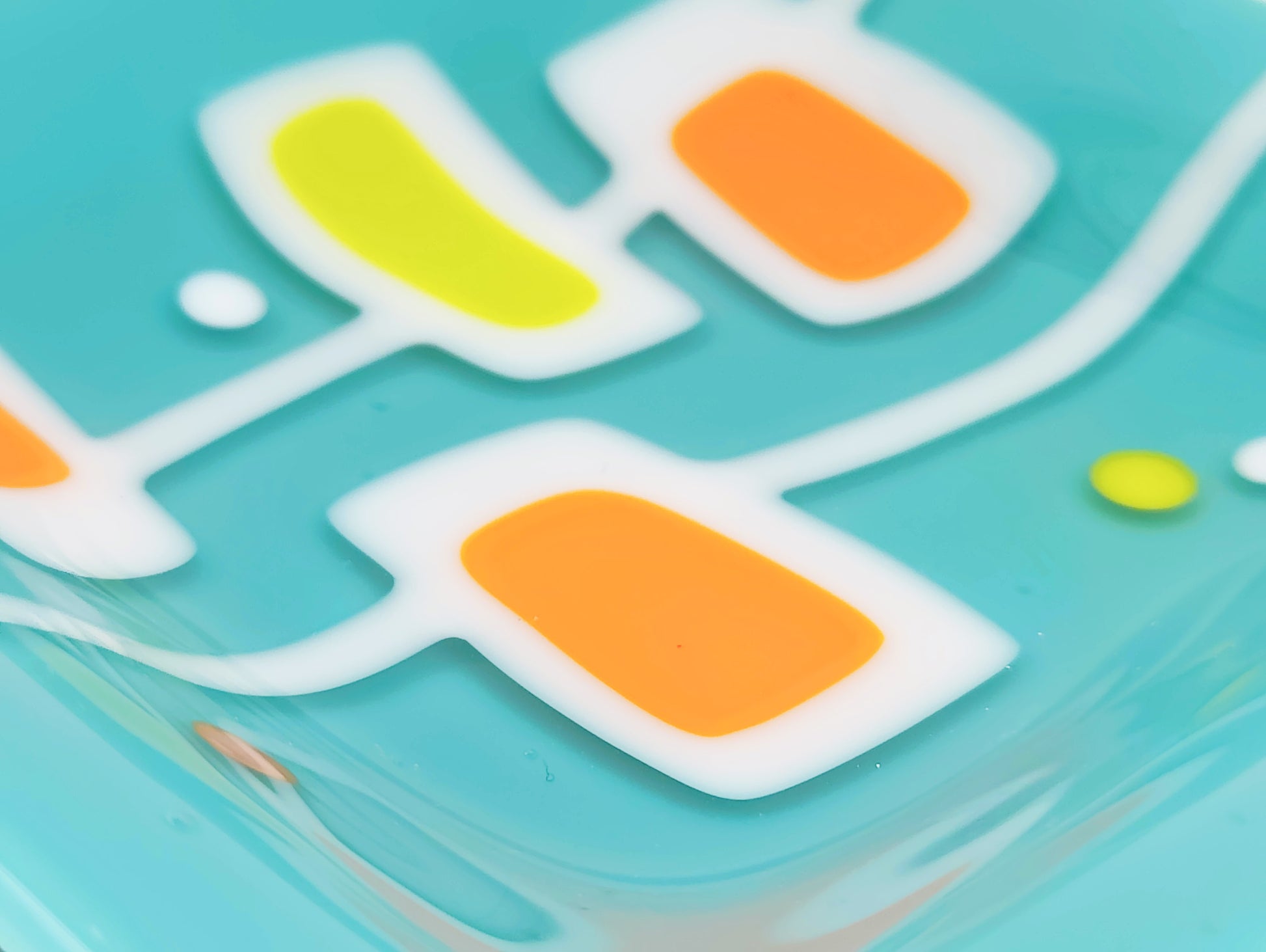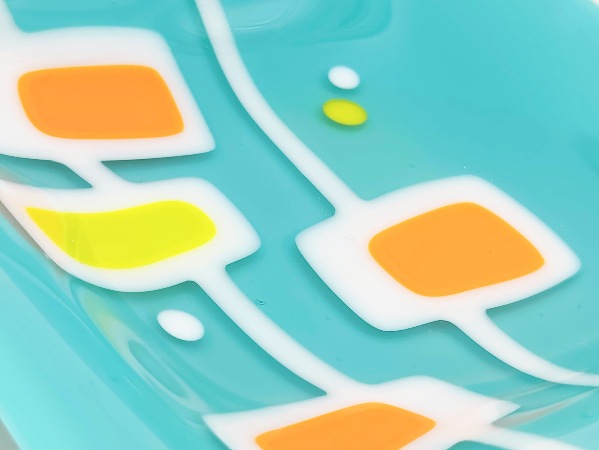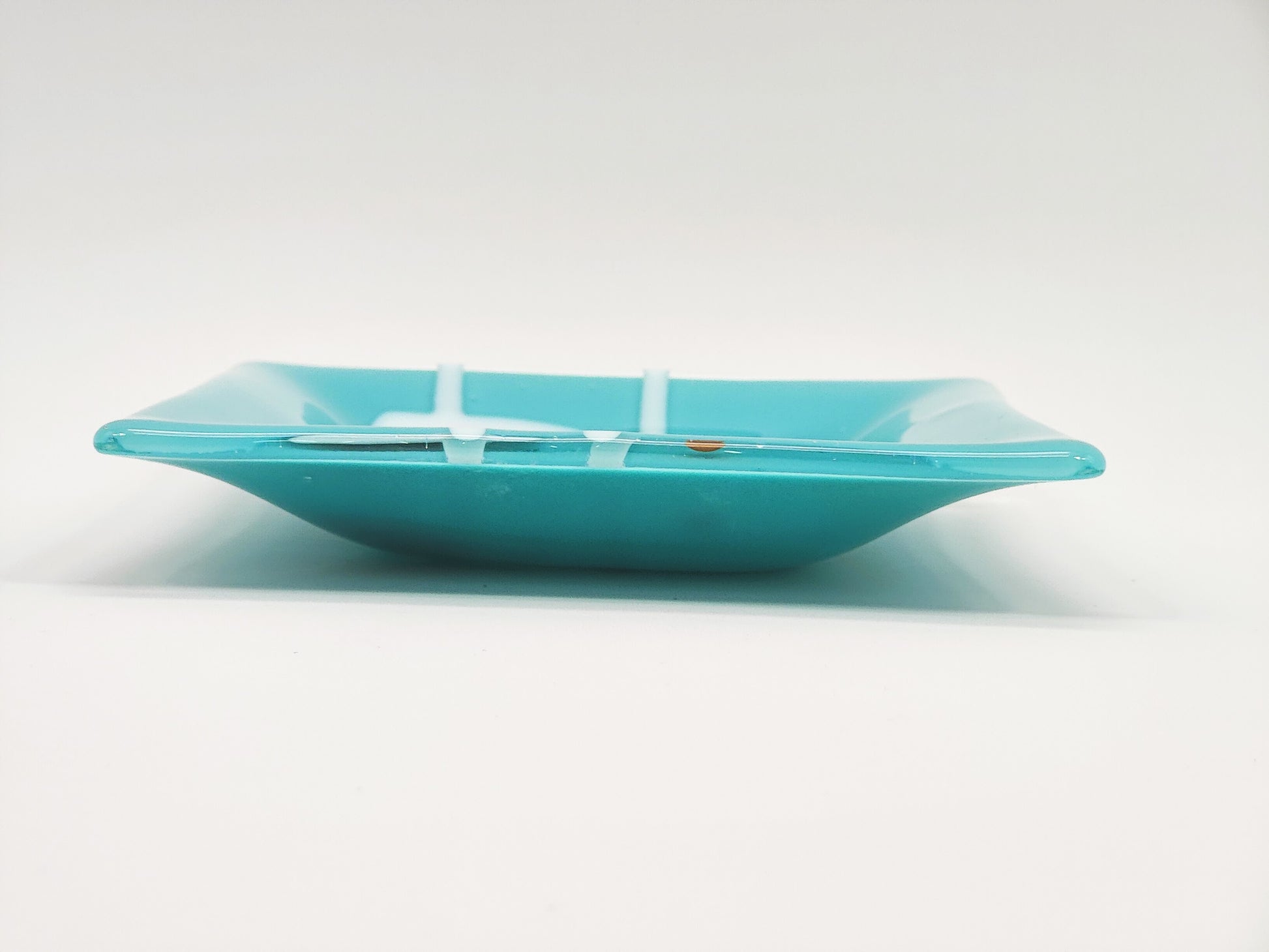 "caution tape" - Retro Handmade Glass Plate in Turquoise, White
