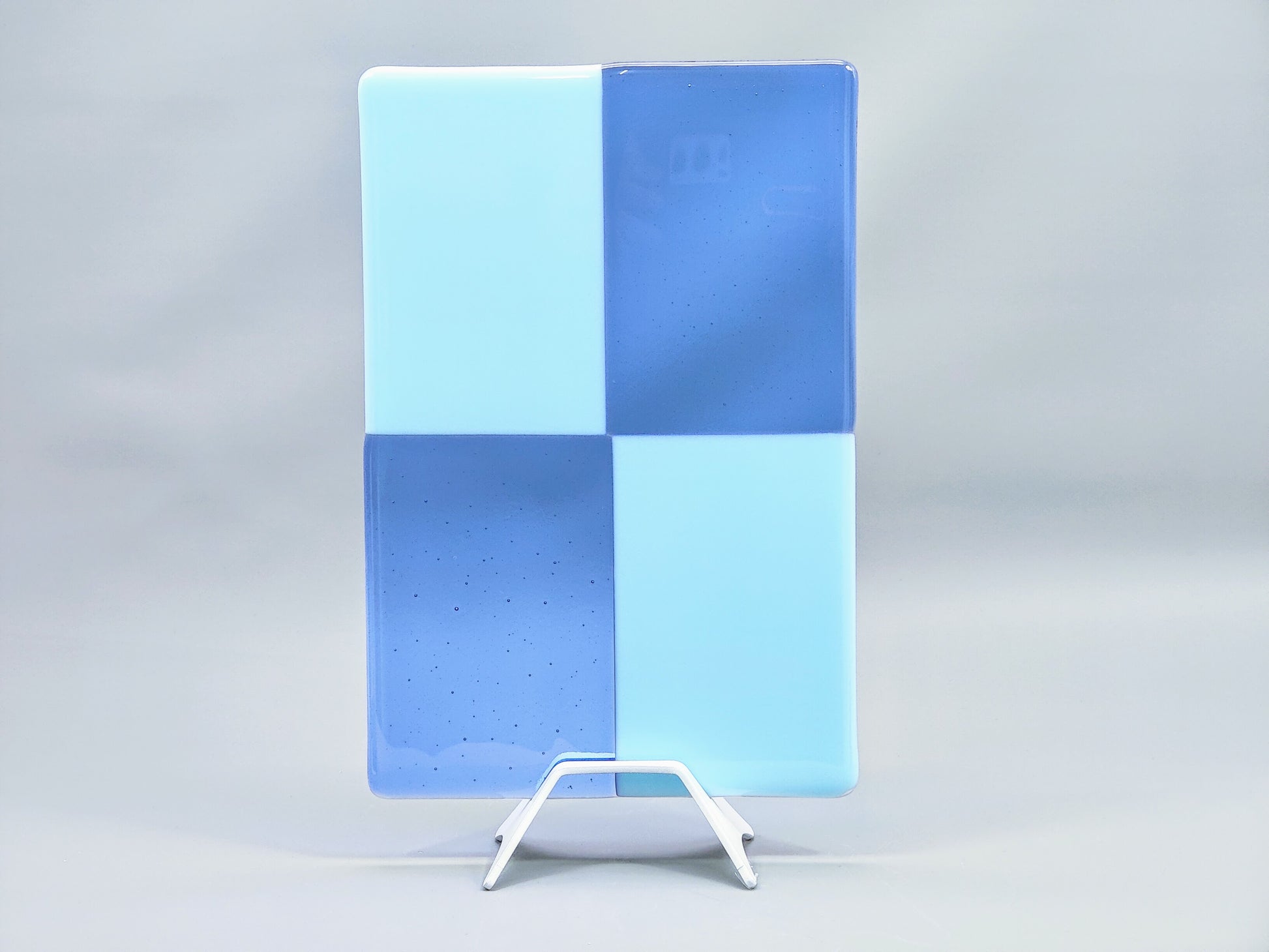 Let your art shine with this powder-coated aluminum display stand for flat kiln-formed glass art pieces; or any flat media! The sturdy, 1/8: thick aluminum elevates your piece vertically and showcases the glass while providing a sleek and elegant base. This stand can hold square, rectangular, circular or oval shaped flat pieces.