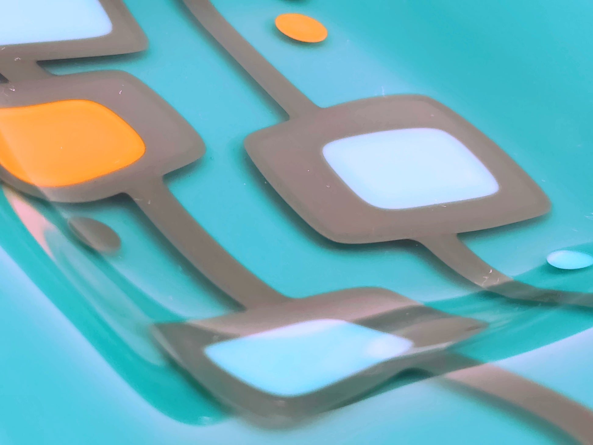 "love at first sight" - Retro Handmade Glass Plate in Turquoise, Grey