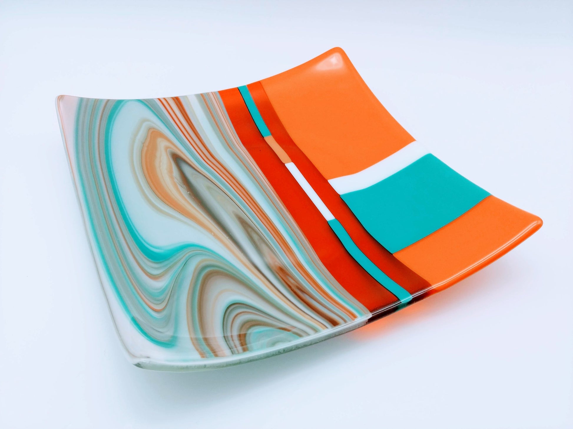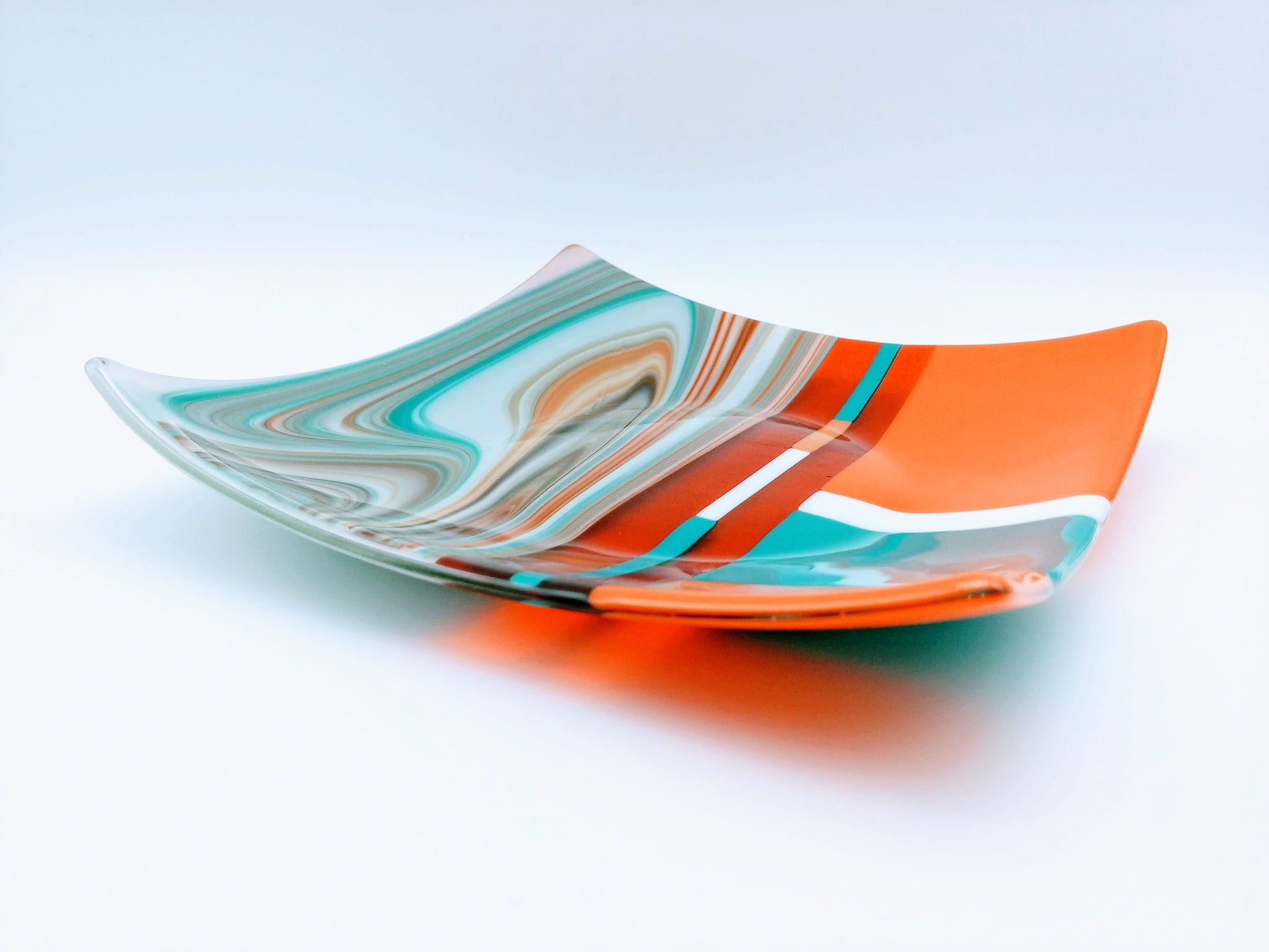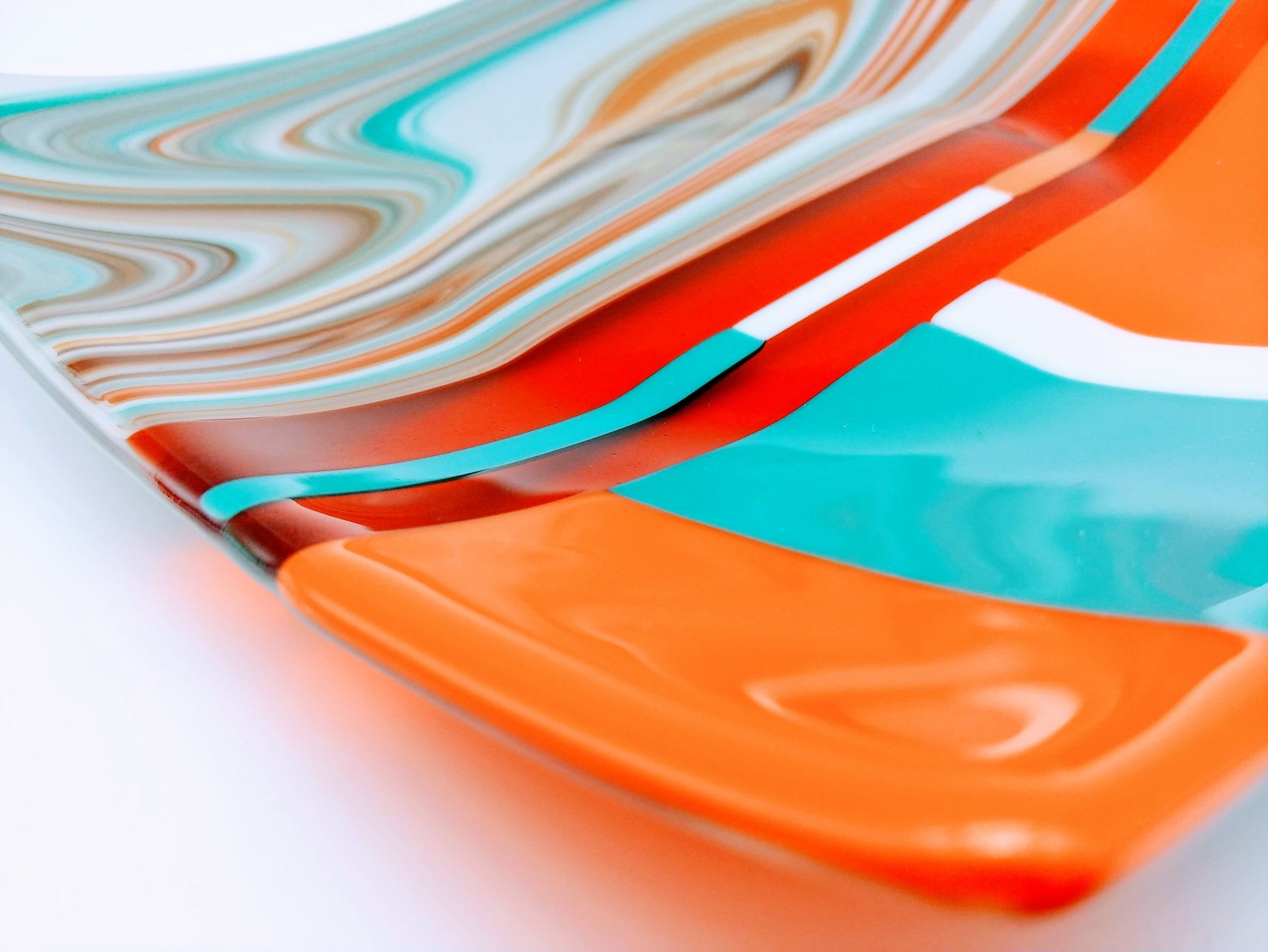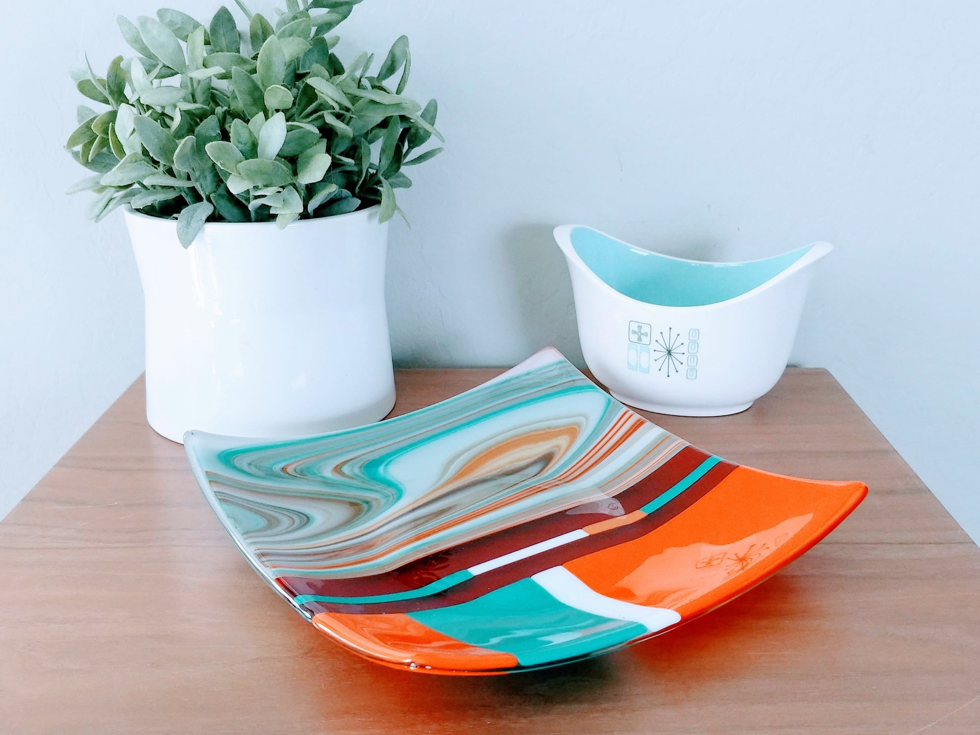 "more midmod than southwest" - Contemporary Handmade Glass Platter in Orange, Turquoise