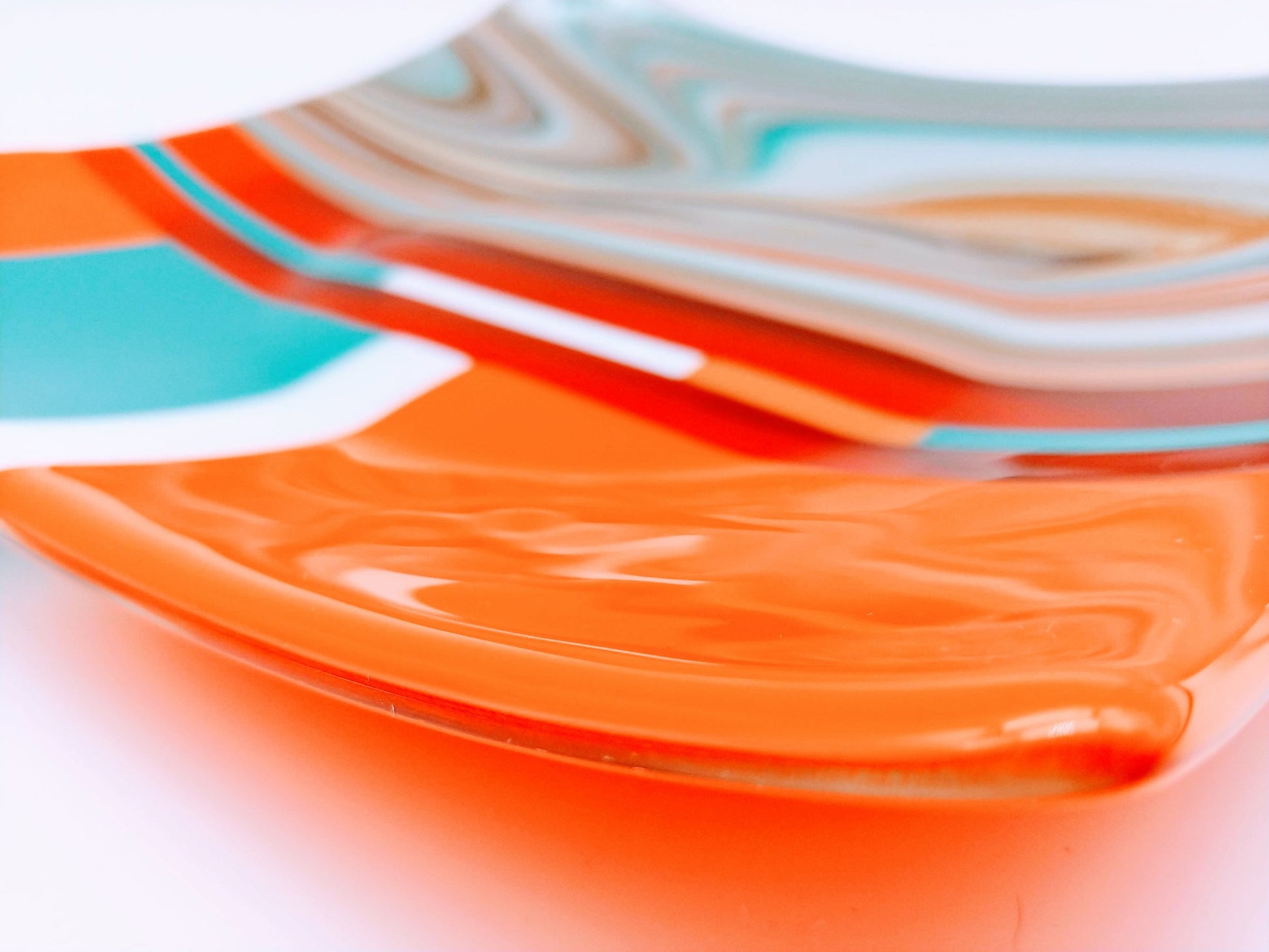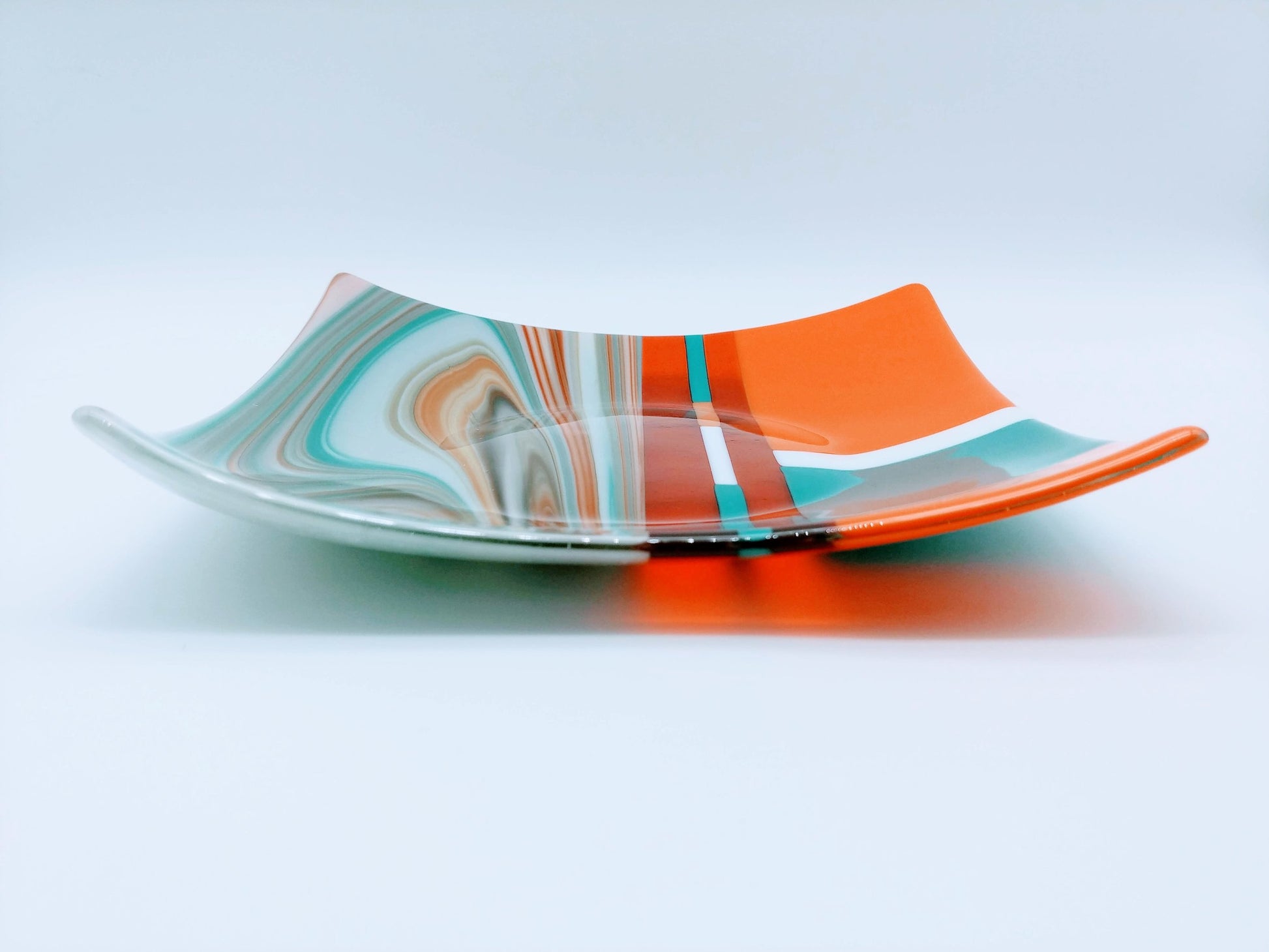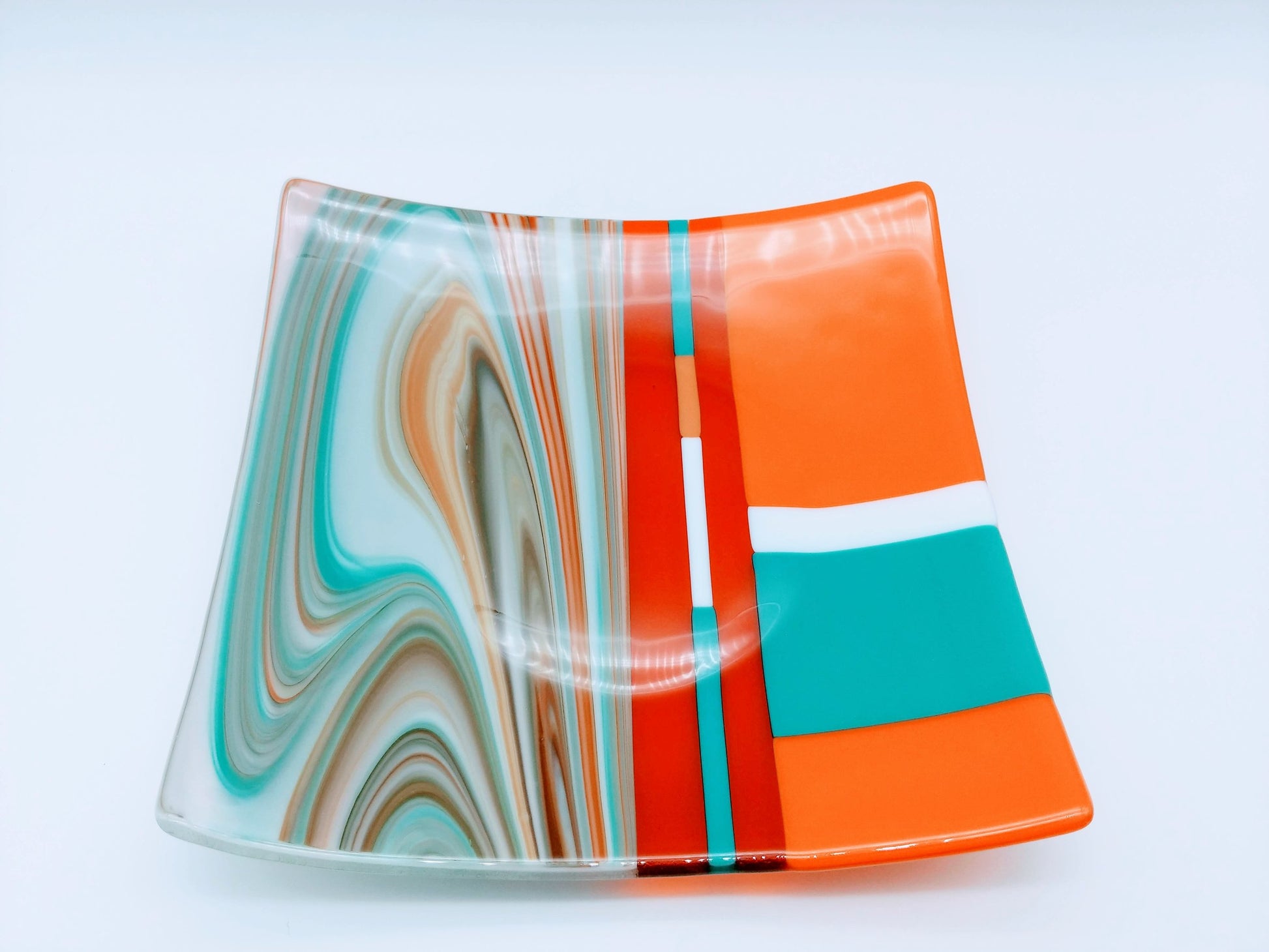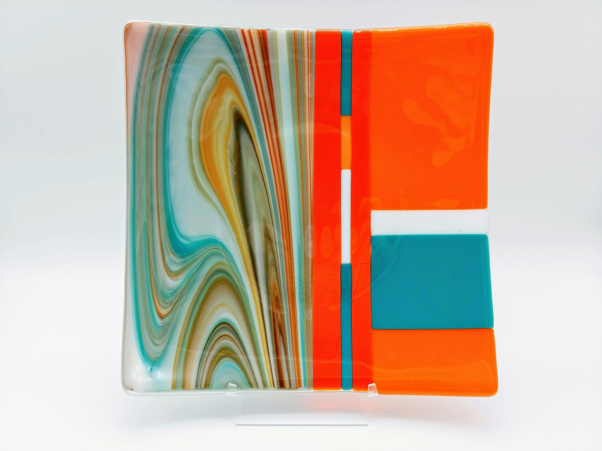 "more midmod than southwest" - Contemporary Handmade Glass Platter in Orange, Turquoise