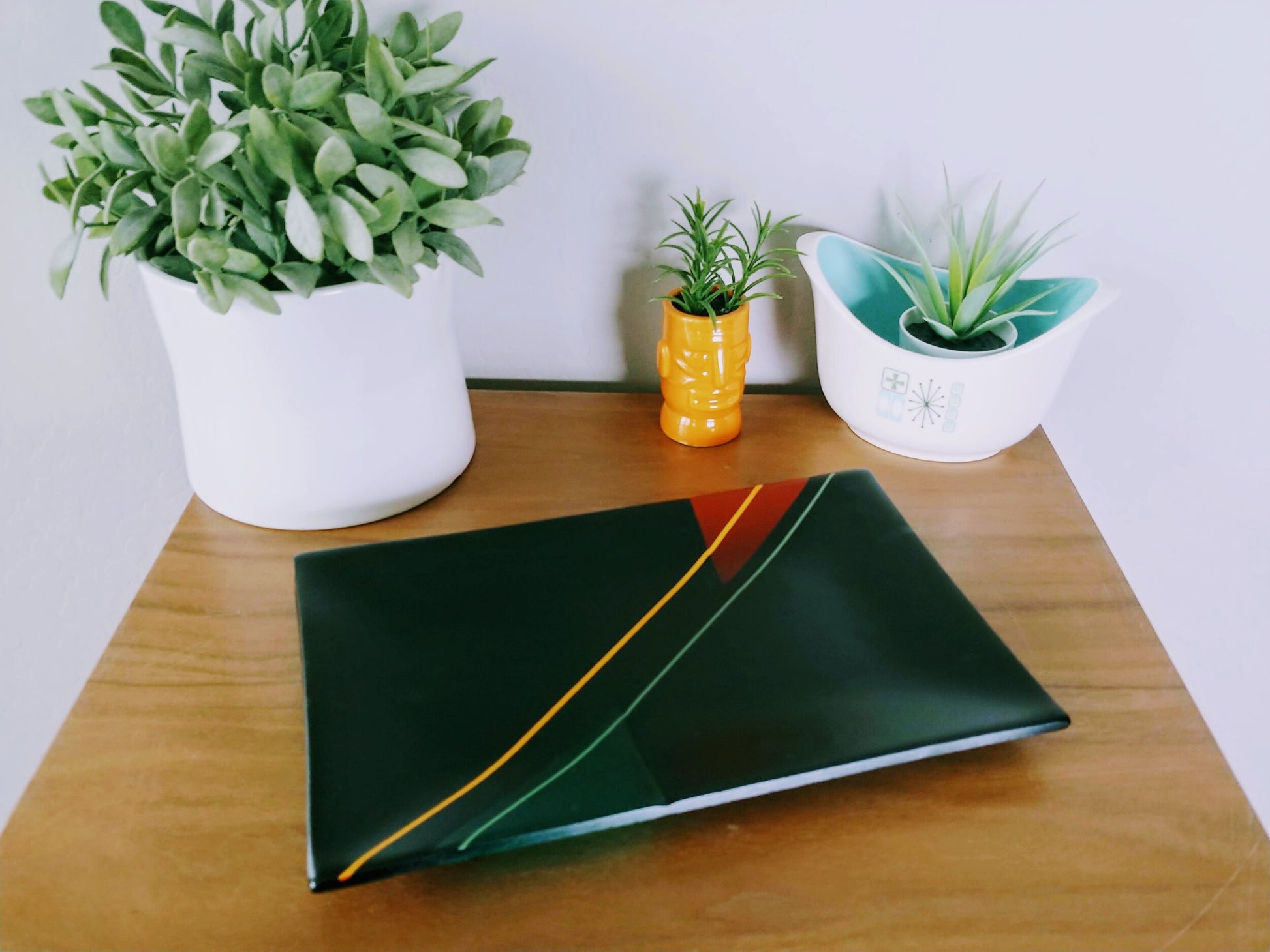 Handmade kiln-formed glass is an art and science that produces truly one of a kind pieces. Sheet glass, ground glass, powdered glass, metals, paints and enamels are formed together using myriad techniques and then fired up to 1500f for many hours -- often multiple times -- to achieve the beautiful, sometimes geometric and sometimes organic forms that are never *quite* perfect. Bubbles, soft lines, and uneven edges are often natural features of kiln-formed glass.