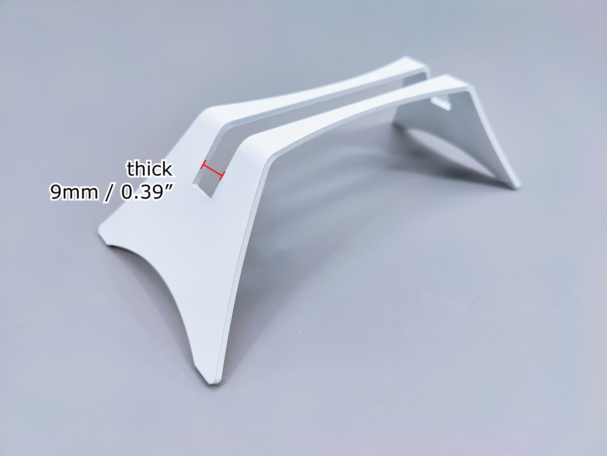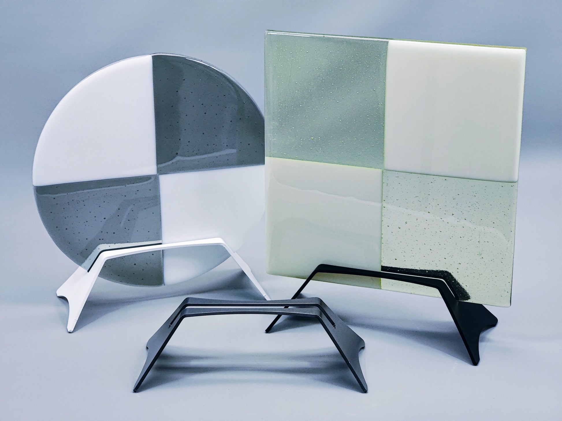 Let your art shine with this powder-coated aluminum display stand for flat kiln-formed glass art pieces; or any flat media! The sturdy, 1/8" thick 5052 aluminum elevates your piece vertically and showcases the glass while providing a sleek and elegant base. This stand can hold square, rectangular, circular or oval shaped flat pieces.