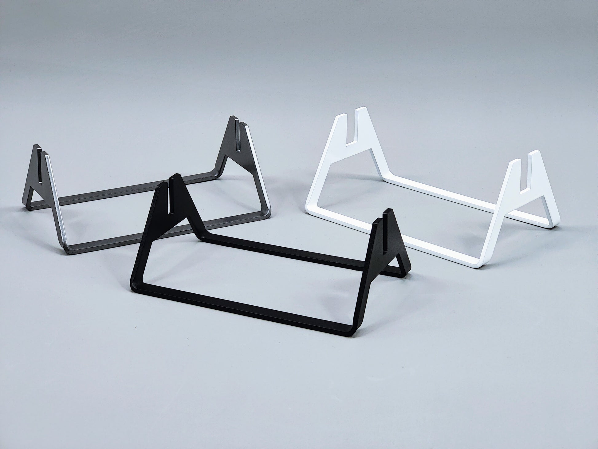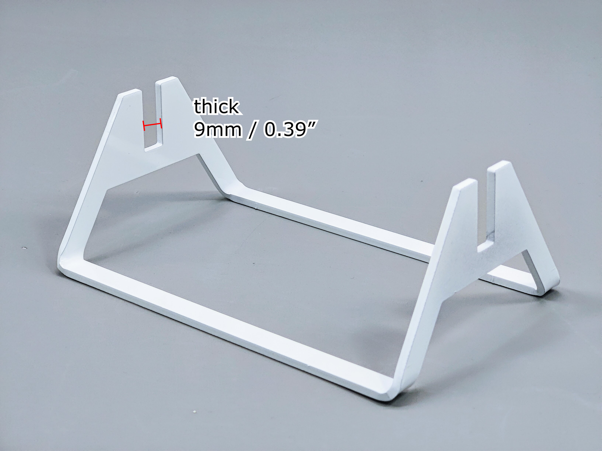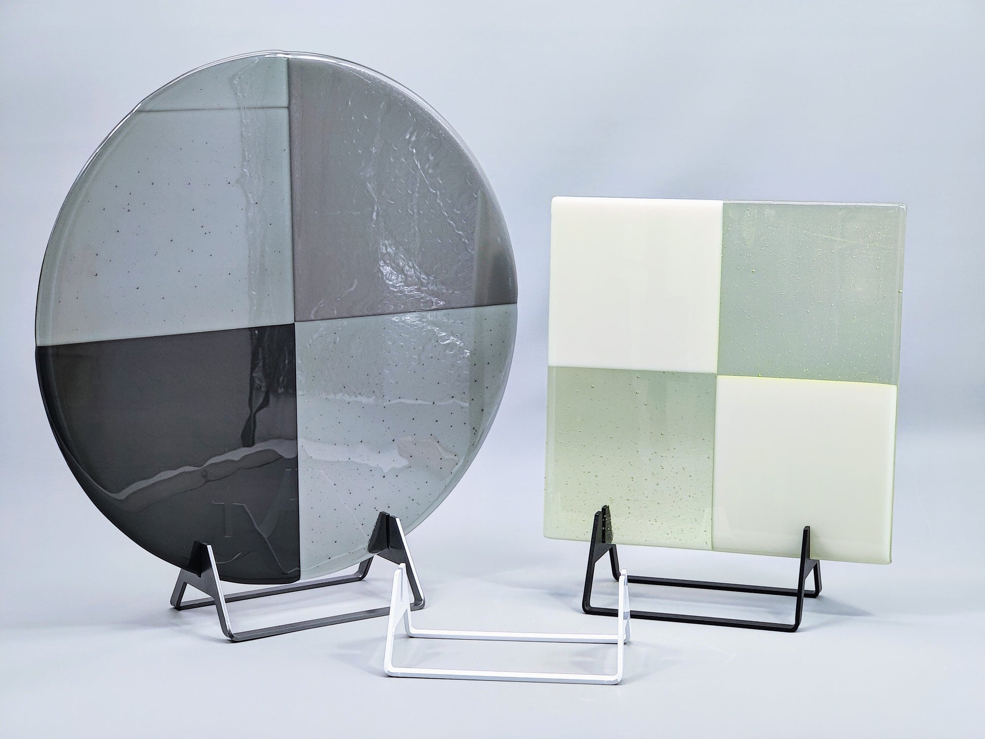 Let your art shine with this powder-coated aluminum display stand for flat kiln-formed glass art pieces; or any flat media! The sturdy, 1/8" thick 5052 aluminum elevates your piece vertically and showcases the glass while providing a sleek and elegant base. This stand can hold square, rectangular, circular or oval shaped flat pieces.
