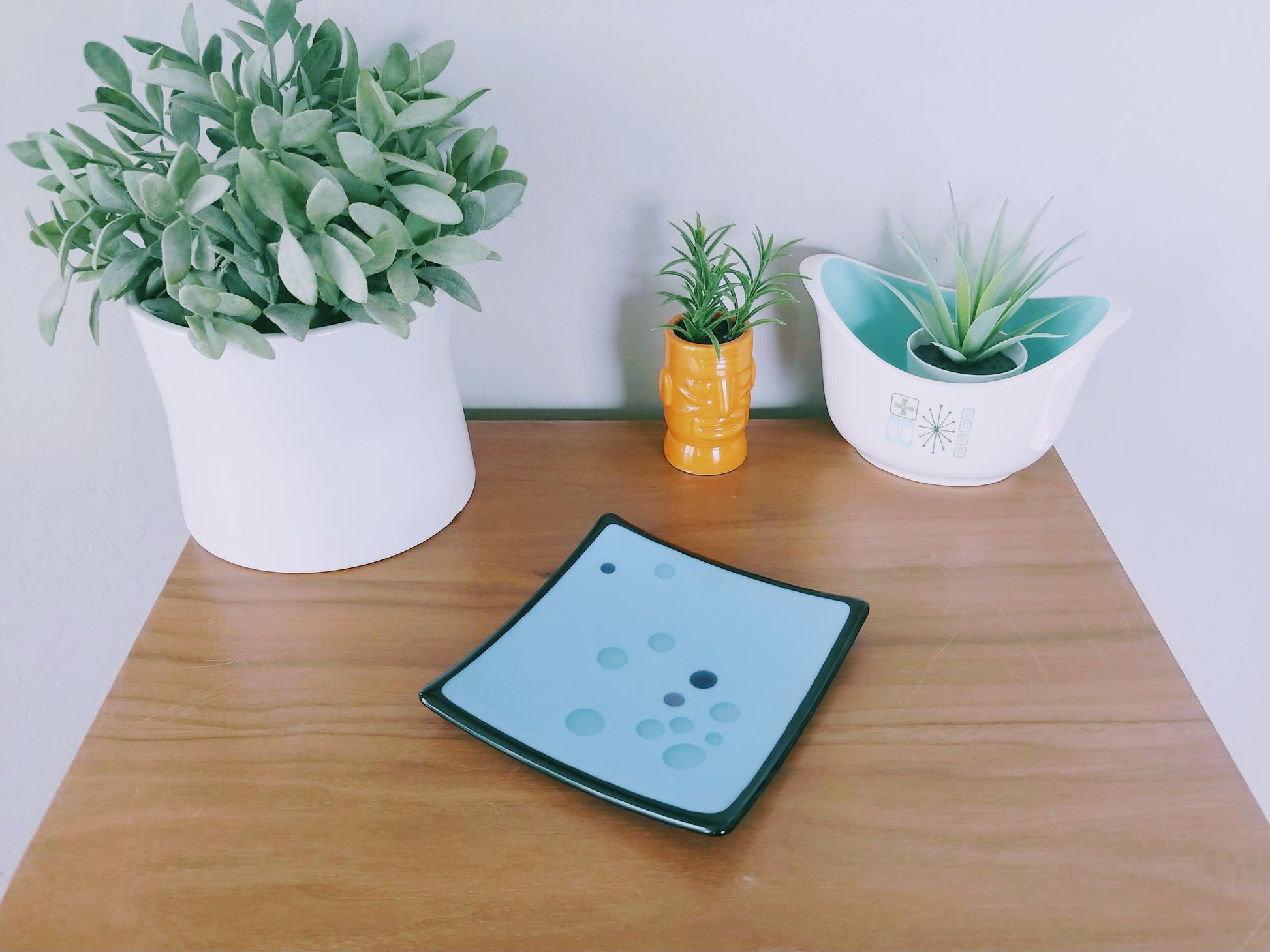 Handmade kiln-formed glass is an art and science that produces truly one of a kind pieces. Sheet glass, ground glass, powdered glass, metals, paints and enamels are formed together using myriad techniques and then fired up to 1500f for many hours -- often multiple times -- to achieve the beautiful, sometimes geometric and sometimes organic forms that are never *quite* perfect. Bubbles, soft lines, and uneven edges are often natural features of kiln-formed glass.