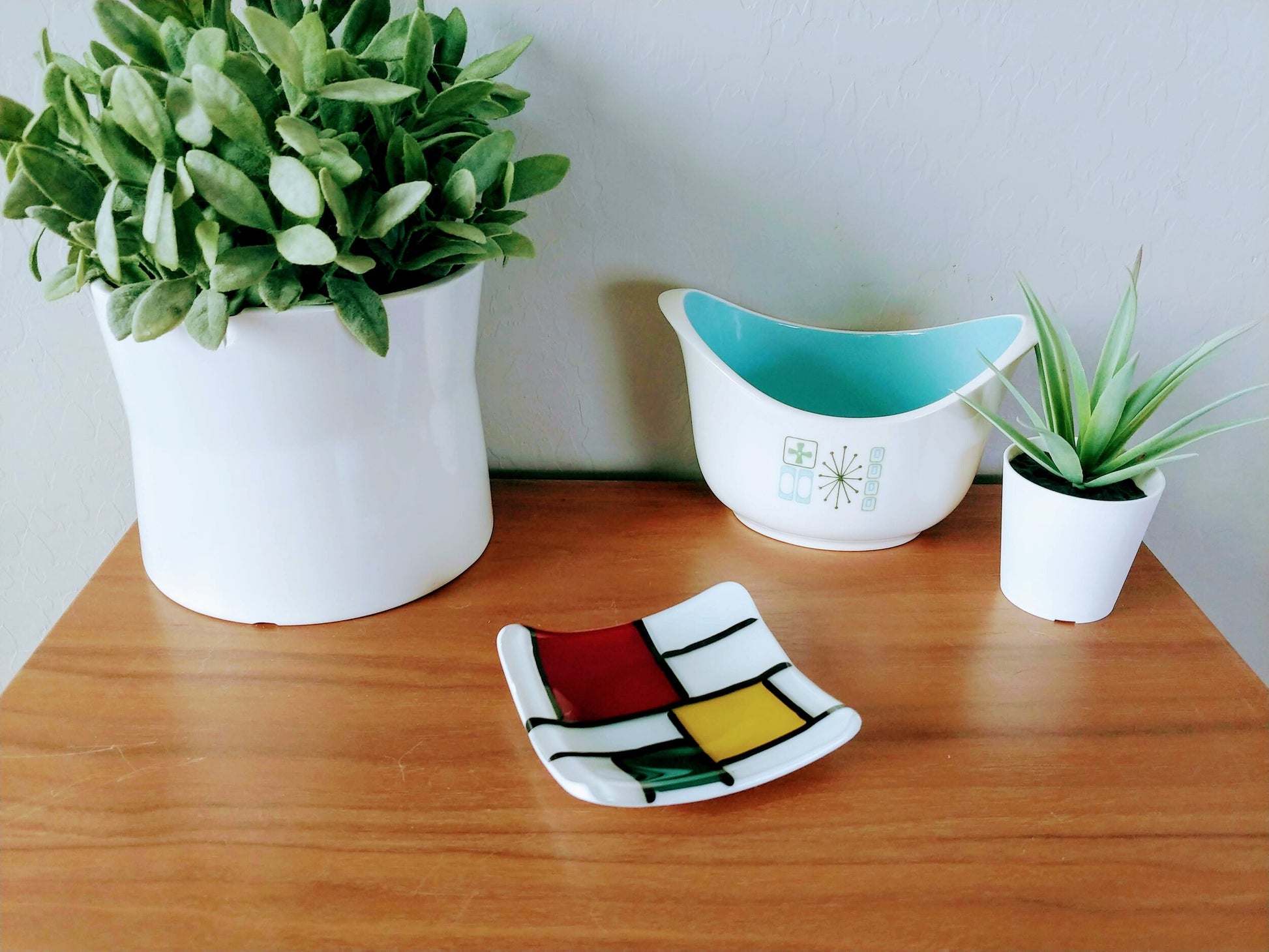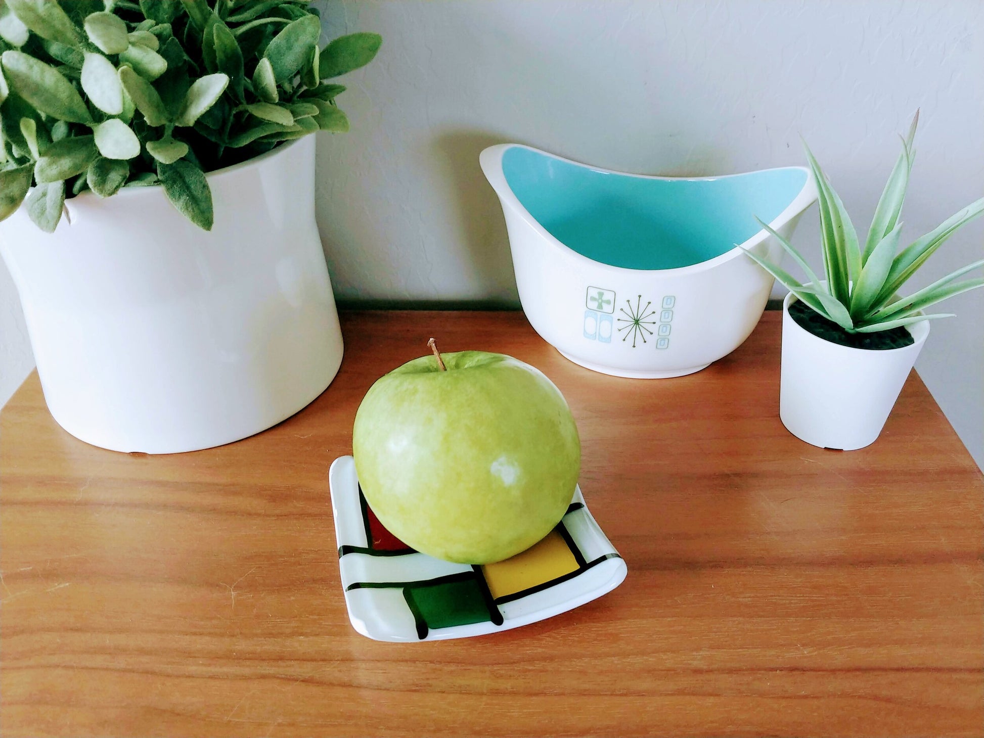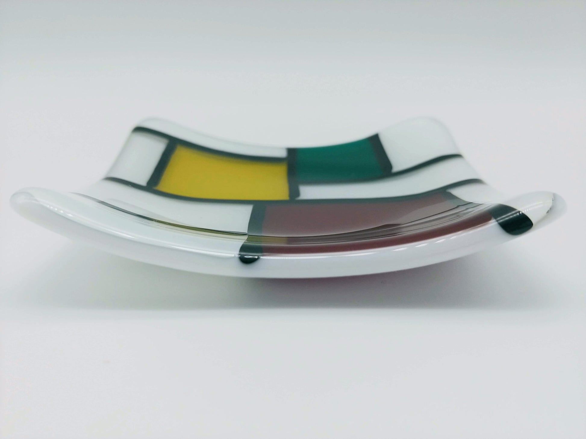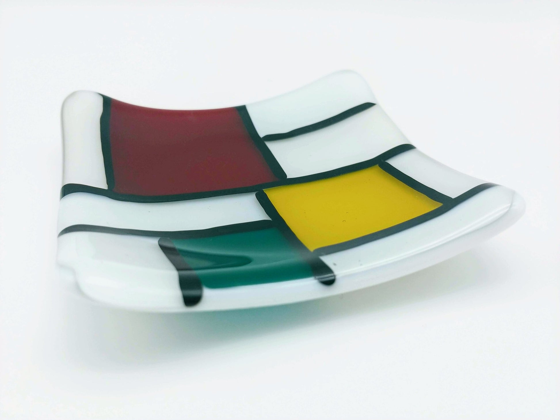 Handmade kiln-formed glass is an art and science that produces truly one of a kind pieces. Sheet glass, ground glass, powdered glass, metals, paints and enamels are formed together using myriad techniques and then fired up to 1500f for many hours -- often multiple times -- to achieve the beautiful, sometimes geometric and sometimes organic forms that are never *quite* perfect. Bubbles, soft lines, and uneven edges are often natural features of kiln-formed glass.