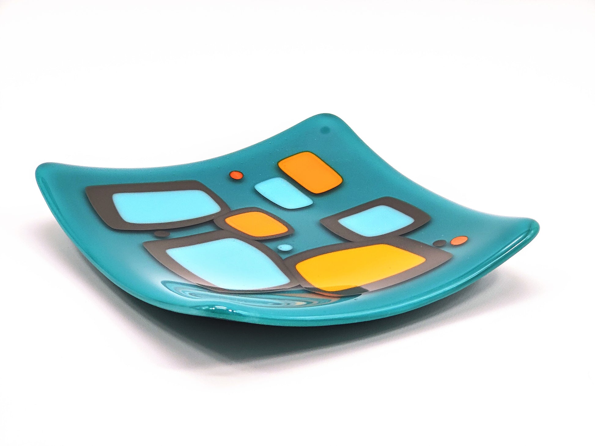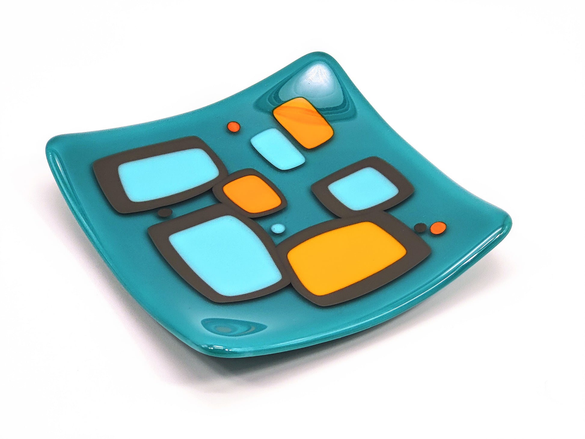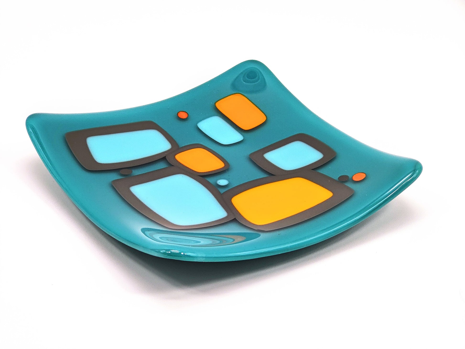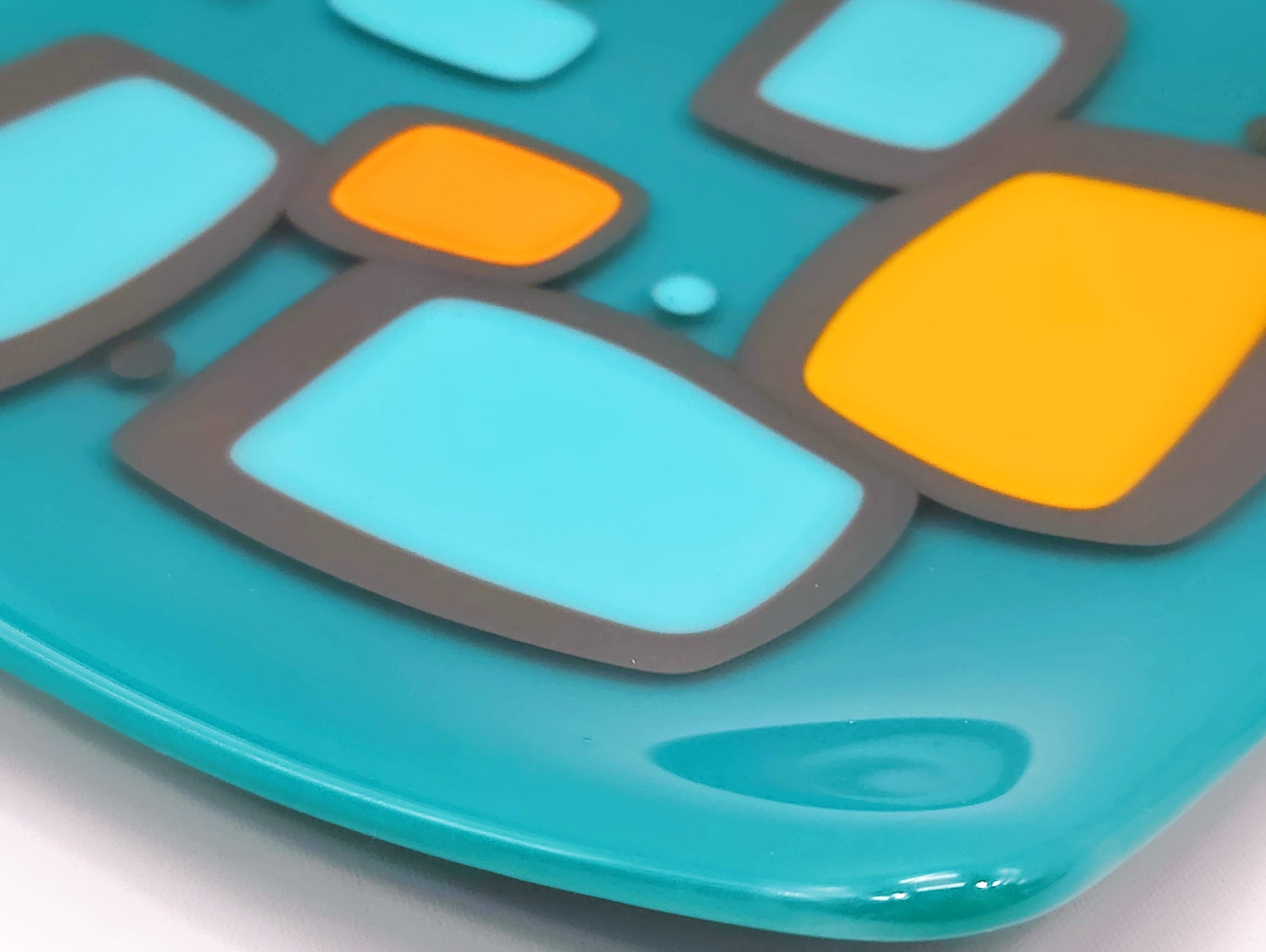 "shenanigans" - Retro Handmade Glass Plate in Turquoise, Grey