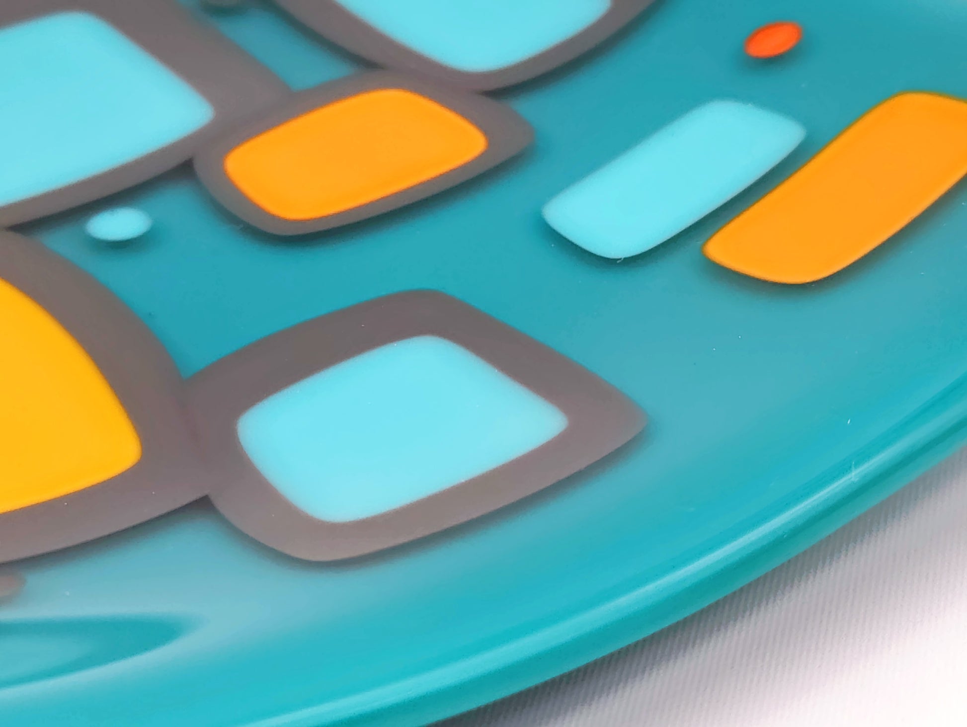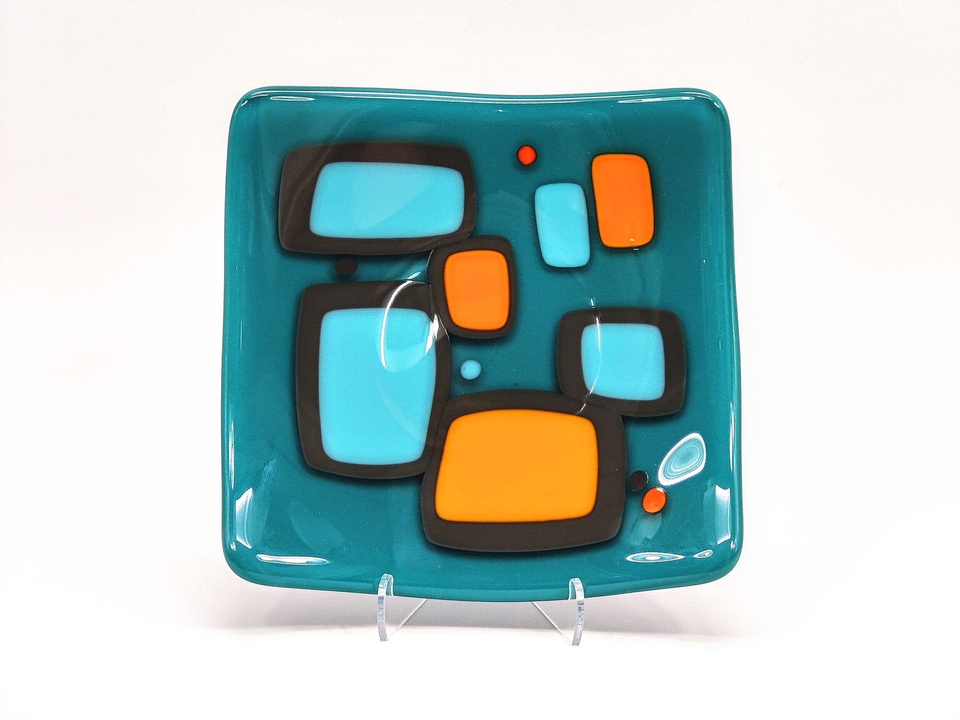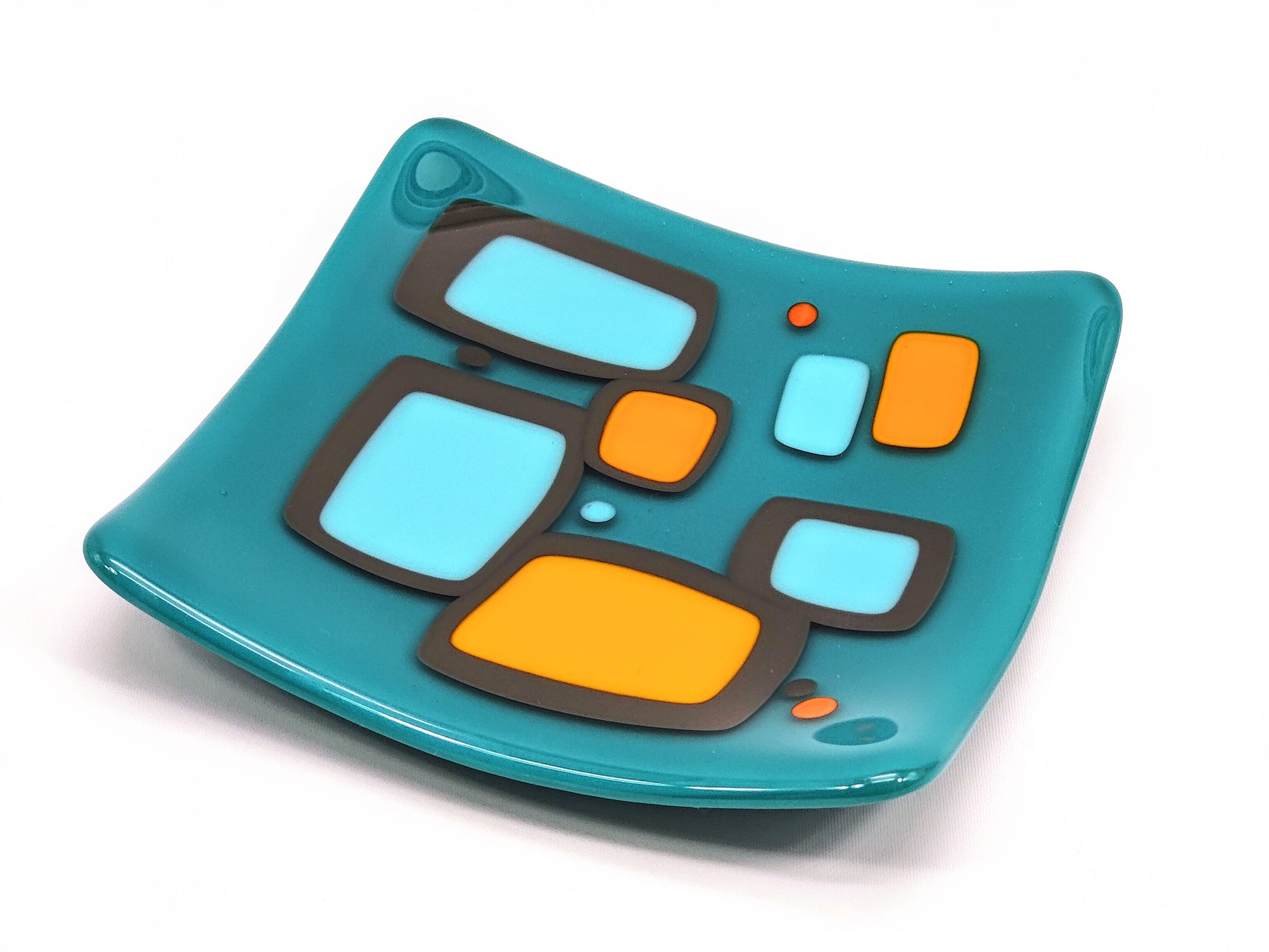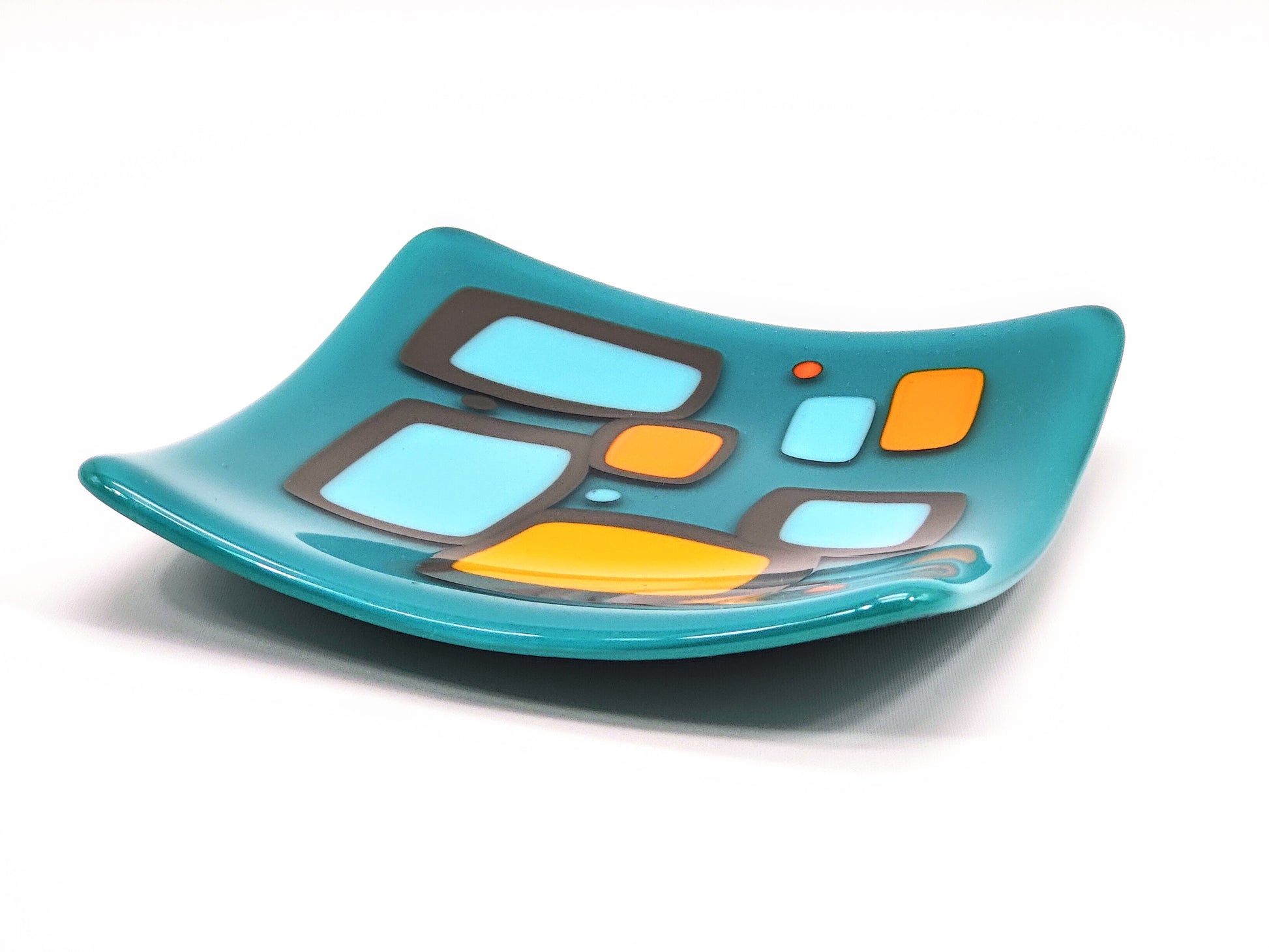 "shenanigans" - Retro Handmade Glass Plate in Turquoise, Grey